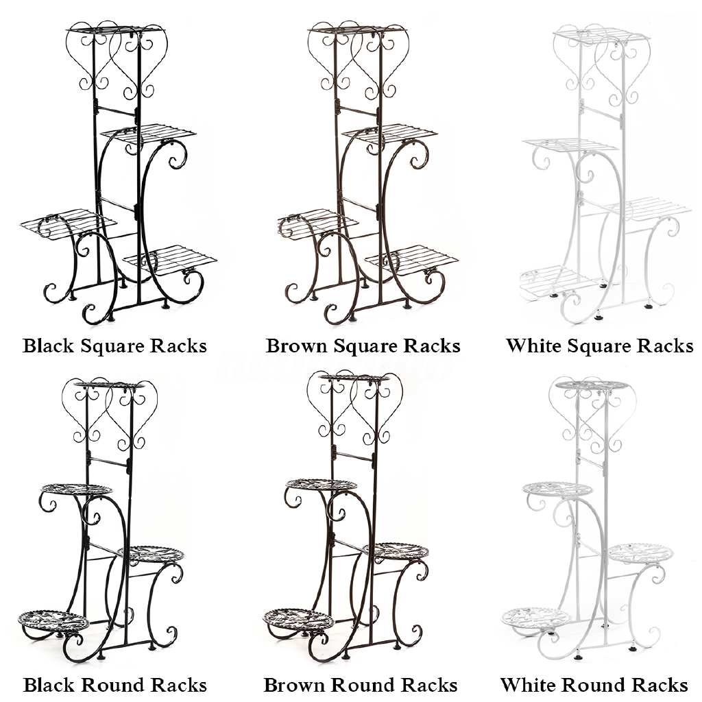 2pcs pot plant stand metal rack outdoor indoor garden decor flower wrought shel.