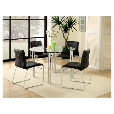 5pc Aneston Glass Top Chrome Leg Round Dining Table Set Chrome Black Homes Inside Out Target from target.scene7.com Related:round glass dining table set round glass table top dining chairs round glass top dining table. The papillon dining table forms the perfect union between black glass and a dark grey/black metal base. Simple yet elegant, a round glass dining table is a functional addition to small dining spaces. We carry the trendiest designs that range from traditional, contemporary and modern. Round dining table and chairs. Extendable black glass top dining table and 4 leather chairs with chrome legs. 12 58 19 dining tables & chairs revitcity division: 59 w dining table round tempered glass top interwoven stainless steel base.